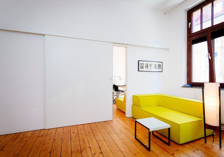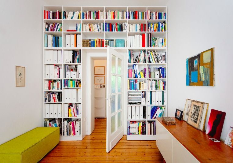 Bücherregal und Schiebetür